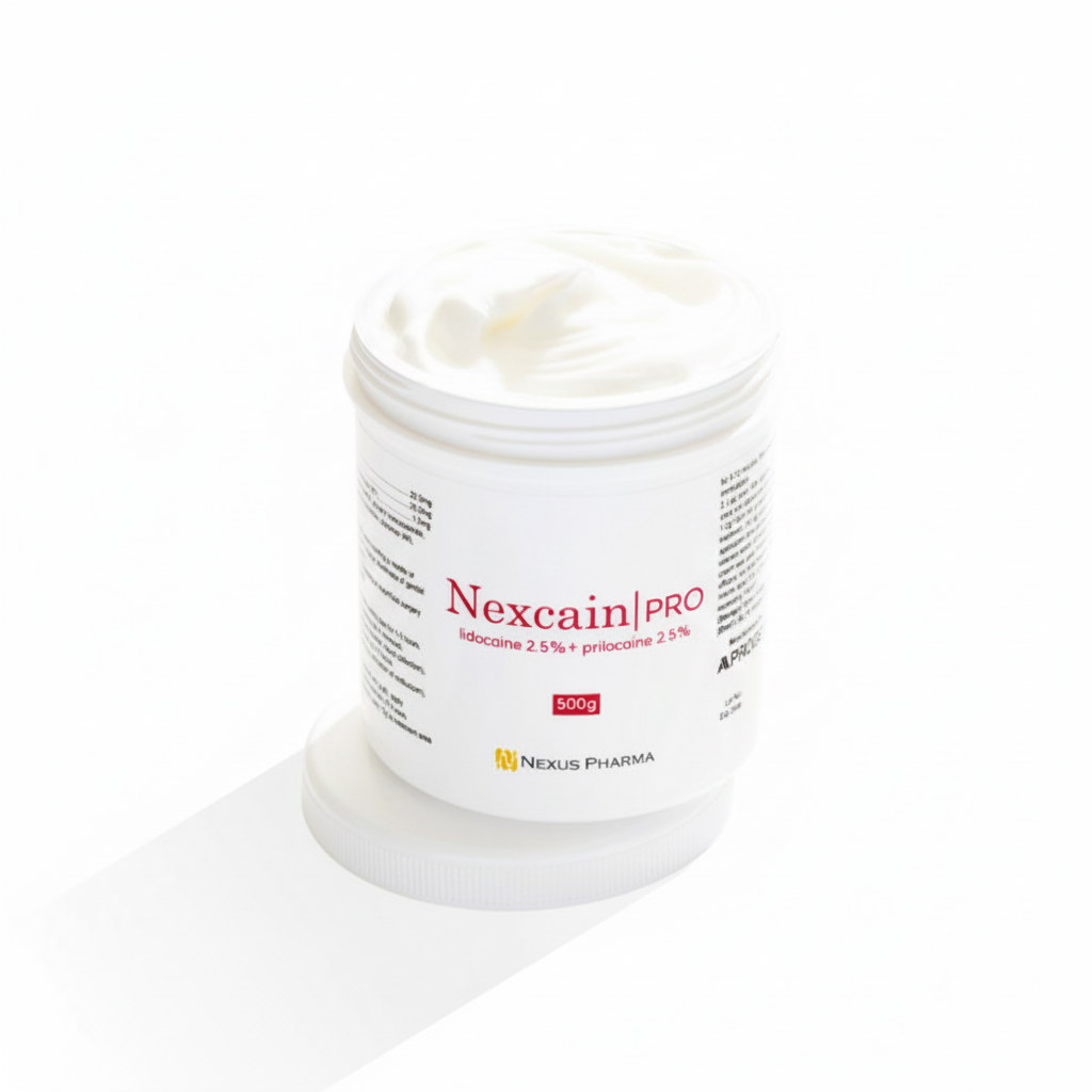 Nexcain Pro es una crema anestésica tópica de última generación, diseñada para proporcionar un alivio del dolor potente y eficaz con mayor seguridad. Utilizando una fina emulsión de lidocaína-prilocaína al 5%, ofrece una acción anestésica profunda mientras minimiza los riesgos asociados con los anestésicos tradicionales. Su formulación avanzada, desarrollada mediante rigurosas investigaciones e innovación, garantiza una textura suave y soluble en agua para una aplicación sencilla y una absorción rápida. A diferencia de las cremas anestésicas convencionales, Nexcain Pro está diseñada con un perfil de baja cardiotoxicidad y neurotoxicidad, lo que reduce los posibles efectos secundarios y la convierte en una opción más segura tanto para profesionales como para pacientes.